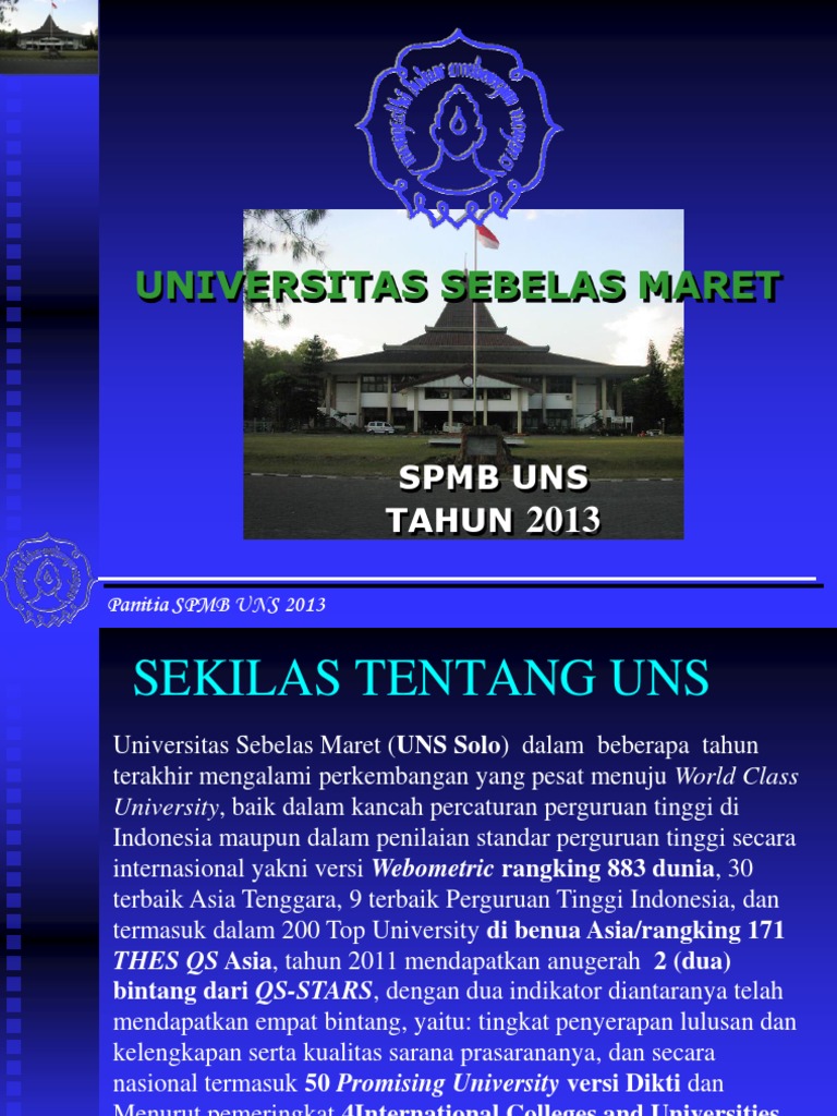 Spmb.uns / Lolos Spmb Uns F2k Iik Strada Indonesia : Mengisi data profil diri (nama, telpon, email dan pilihan program studi), dan klik kirim form pendaftaran.